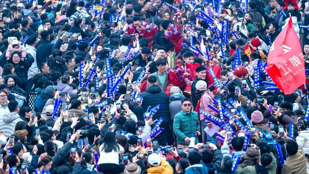 杭州市富阳区银湖体育中心人声鼎沸,上千名球迷自发组织,用欢呼、彩带、锣鼓为勇夺“浙BA”淘汰赛四强的城市英雄们准备了一场热烈的欢迎仪式。