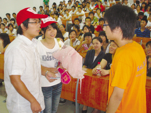 ▲昨日,温州大学瓯江学院以情景剧形式给新生上始业教育课,专讲防骗。 傅时波 摄