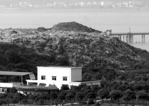垃圾一层层地堆,让杨府山垃圾填埋场成了名副其实的“垃圾山”。 记者 郑之越 摄