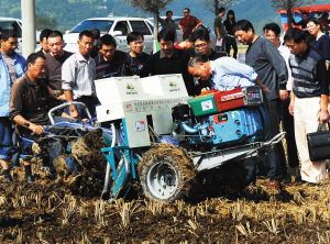 昨天上午,市农业局组织技术人员在瑞安召开冬种现场会,现代化的农业机械吸引了众人目光。 王胜利 摄