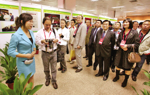 ▲去年11月8日,纪念改革开放30周年大型图片展在市展览馆开幕,出席“世温会”的嘉宾在兴致勃勃观展。许日尤 摄