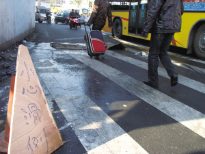 积水成冰 滑倒路人一片