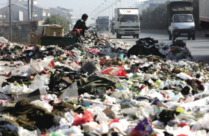村民冯先生说,平时垃圾都是倒在边上的垃圾中转站,但最近一些人将垃圾运到中转站后,又拉了出来,直接倒在路上。冯先生说:“出现这种情况,据说是卫生费收缴权有纷争。谁收卫生费我们不管,垃圾不能倒在路上呀。”