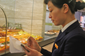 “请问你们喜欢什么口味的,要点几个人的菜……”正月初四,当我们采访苍南万豪大酒店餐厅主管赵红月时,这位文静秀气的女孩正在向客人介绍菜谱,并动作干脆利索地在菜单器上记下客人点的菜名。“节假日的时候,是我们餐厅最忙的时候。”虽然餐厅工作繁忙,有时好几拨客人一下子蜂拥而至,但年仅26岁的赵红月显得有条不紊,在一一安排其他点菜员工的同时,自己则一马当先。