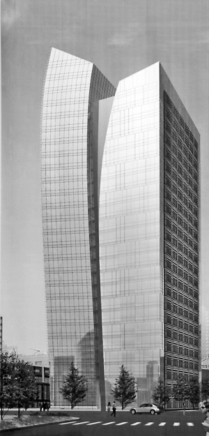 项目位于市中心的药行街与灵桥路交汇处(原五金交电商场地块),拟建成宁波市第一座真正达到国际标准的纯出租甲级写字楼,成为宁波地标建筑之一。项目总建筑面积近5万平方米,地上23层、地下3层,由设计了微软中国总部的国际顶尖建筑师事务所NBBJ做规划设计,并引入世界上先进的节能环保设计理念。按照土地出让时的要求,该地块将于2011年4月份前竣工。