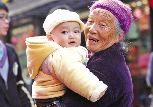 节后工厂已开工 祖孙出来看市容