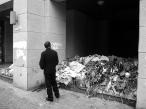 为什么屋内被扔了这么多垃圾而又迟迟不见清理?记者采访了该条步行街物业管理部门的负责人,他告诉记者,这条步行街虽然已投入使用,但已开业的店铺很少,大部分店面都还空置着,其中有20间大小面积不等的店面还未分配。而被倒垃圾的都是这些未定位分配的店面,因为这些店面都没有门。