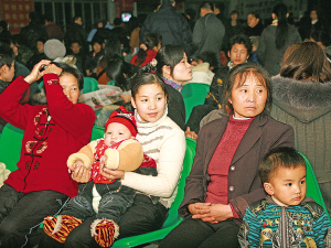 ▲昨晚,温州火车站候车厅里挤满了准备出发的乘客。翁卿仑 摄