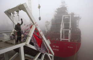 昨天,乐清市七里港镇东方造船集团,工人们正在装修出口欧洲的化学品油船。倪华初 摄