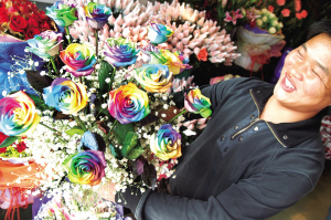 在情人节,一枝普通玫瑰的售价仅10元左右,“蓝色妖姬”、“绿宝石”为何能身价倍增呢?我们不妨来看看它们的“变身”过程。