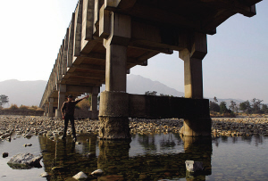 据介绍,前年年底枯水期时这些桩柱裸露还不至如此严重,而去年年底枯水期时,珊溪水利枢纽管理公司发现事态的发展已超出预料,马上联系设计单位采取补救措施。目前维修方案已经拟定,但技术人员坦言,维修只能治标不能治本,如果下游继续采砂,渡槽的桩柱迟早会坍塌,而一旦坍塌,抢修最起码需要两个月以上的时间。向市民提供饮用水源是一刻也不能停的,而目前珊溪水利枢纽没有备用水源,如果险情发生,后果是无法想象的。