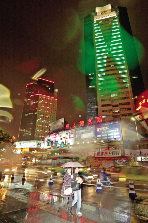 南站天桥附近的灯光效果。