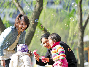 昨天白天艳阳高照,在市区马鞍池公园,许多市民带着宝宝出来呼吸新鲜空气,享受暖洋洋的阳光。 苏巧将 赵醒 摄
