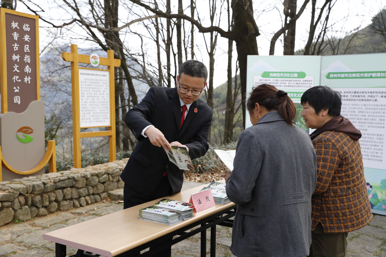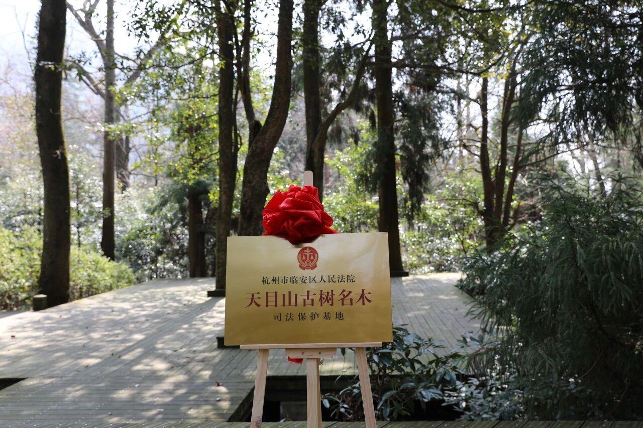 如今,天目山保护区内有一块亮眼的招牌——杭州市首个“古树名木司法保护基地”,这让监督有了固定阵地。“这里不仅能开展巡回审判、普法宣传,我们还联合浙江农林大学的专家,对古树展开常态化巡查走访。”