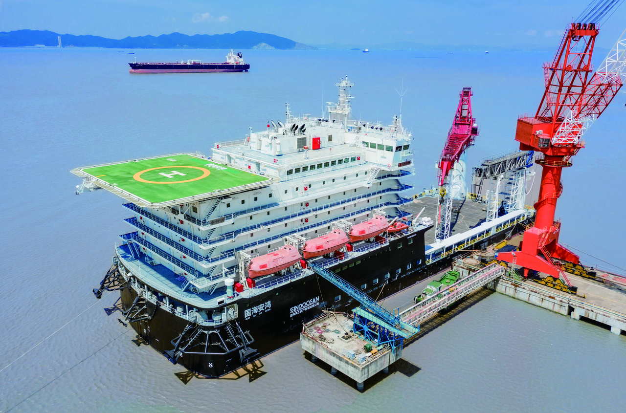 舟山建造的全球首艘具备 DP3 动力定位功能的海工生活驳船“国海安鸿”。舟山市委组织部供图