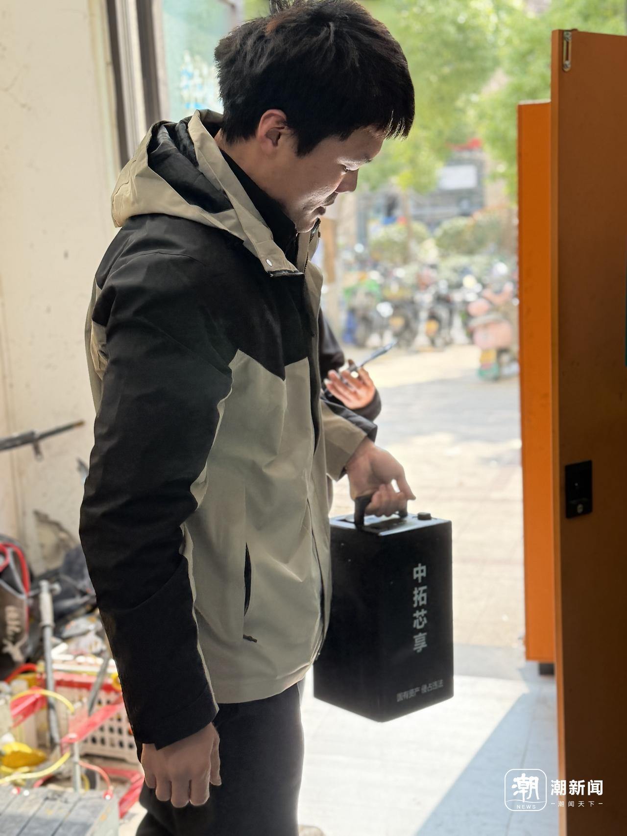 何流通拎着电瓶 章然摄