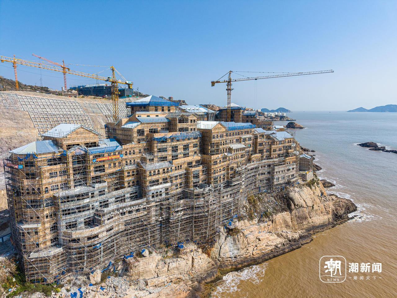 3月11日,作为东海好望角全域旅游提升项目的先行重点工程,温岭曙光湾酒店建设现场一片繁忙,外立面、室内装饰、综合管网及室外景观等施工板块同步推进,项目建设蹄疾步稳。航拍镜头下,临海而建的酒店轮廓日渐清晰,将山海风光与建筑美学巧妙融合,尽显滨海特色。