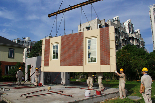 所谓装配式建筑,形象地描述就是像“搭积木”一样,将预先在厂房内,用钢筋和混凝土制造好墙板、楼板、阳台、飘窗等构件,运送至施工现场装配固定的建筑方式。目前,这种建房方式在日本、美国、德国等发达国家已十分成熟。相比传统建筑施工模式,装配式建筑采用现场吊装的形式建造房屋,极大地减少了施工作业人员,并通过机械化定位安装提升了建筑质量。在房屋建造现场,大型吊车将混凝土预制构件一块块吊起,并由少数几名产业工人指定操作,根据施工图纸安装在固定位置。