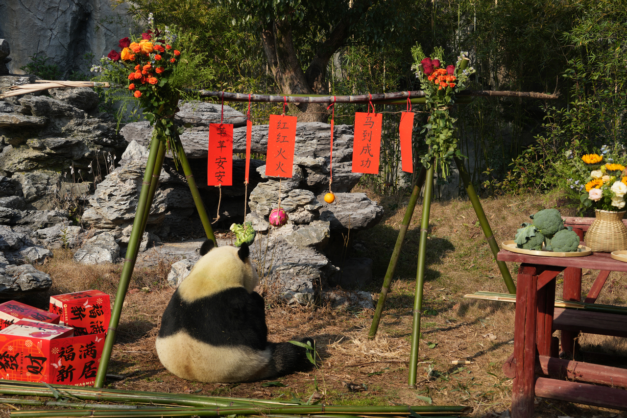 杭州再添“国宝”新成员。1月16日上午,杭州野生动物世界,性格鲜明的“星二代”居民——大熊猫“壹壹”正式与游客朋友见面。