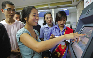 昨天上午8时30分,全市除洞头外的10个选号点、12台选号机同时启动。几分钟内,“浙C·8008C”、“浙C·8688C”、“浙C·8588B”相继在泰顺车管分所、平阳车管分所、市车管所诞生。至当天上午10时许,市车管所自主选号机前一直排着长队。车主凭受理单,在选号机前扫描后,便可在触摸屏上输入自己心仪的号码,之后电脑会立即反馈该号牌是否已被使用,如遇上撞号则可再次选号。选号完毕后,车主交纳125元的上牌费用,便可回家耐心等待,车牌将由省公安厅车管部门直接邮寄过来。