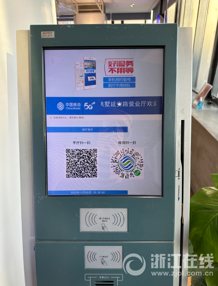 近日,网友胡川(化名)向浙江在线“群众工作室”反映,前几日去移动手机营业厅办事,排队取号必须要扫描二维码添加企业微信号,再在弹出界面中输入手机号,获取验证码,才能取到号子。“工作人员还告知只能通过这种方式取号排队,不然不能办理业务。”一系列复杂操作让胡川有些不满,“简单办个事儿,不是要扫码,就是要授权。”
