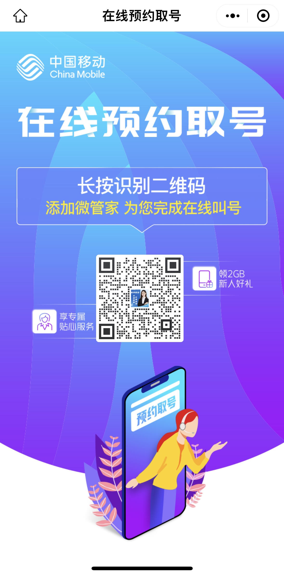 相比延安路营业厅,这家营业厅显得更通情达理,不愿意扫码的消费者也能排上队,办上业务。此外,记者扫描这家营业厅的二维码发现,扫描后系统直接进入“在线预约取号”小程序取号,比起延安路门店,少了添加“移动微管家”企业微信号的步骤。