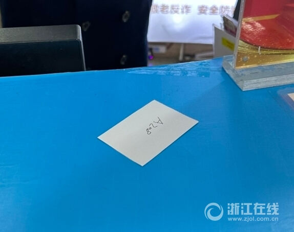 工作人员给的排号小票 浙江在线记者 李心怡 摄