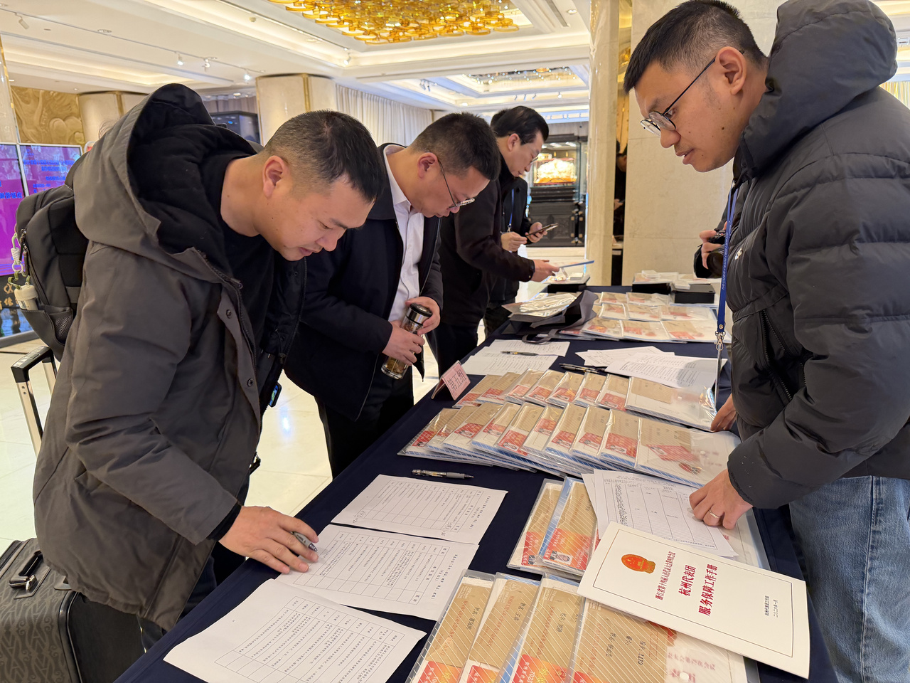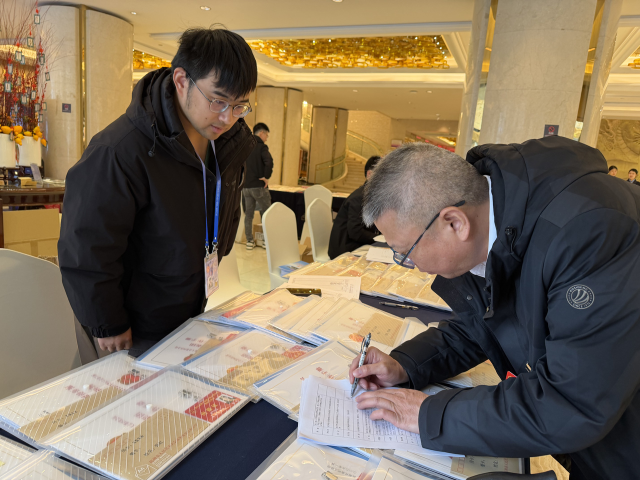 扫码登记、领取资料包……下午1点50分,浙江城北文澜酒店的报到处十分忙碌,绍兴、湖州两地代表团成员陆续赶来,有条不紊地完成报到流程。