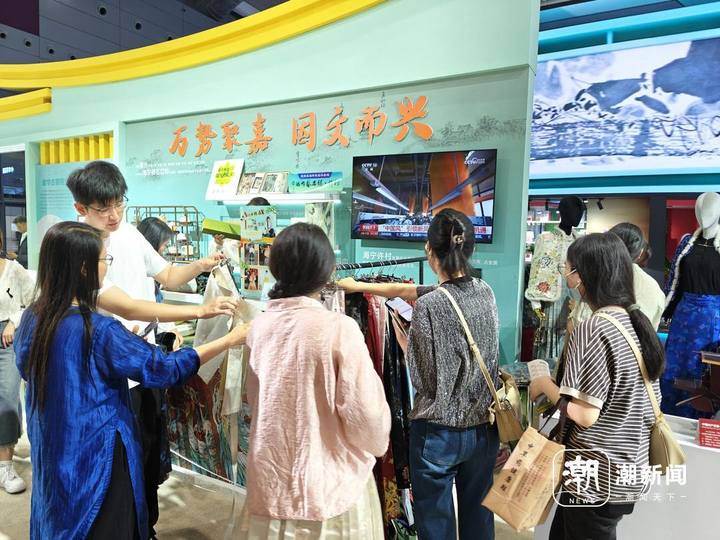 “海宁的马面裙华美精致,这种传统服饰的美应该让更多人看到。”在浙江馆的展区内,来自中国布艺名镇许村的国潮马面裙十分吸睛,引得不少观众驻足欣赏,体验穿戴。浙江省海宁市许村镇宣传干事冯婉箐笑着说:“如何推动传统文化创新性改造和创造性发展,马面裙就是一个非常好的缩影。”