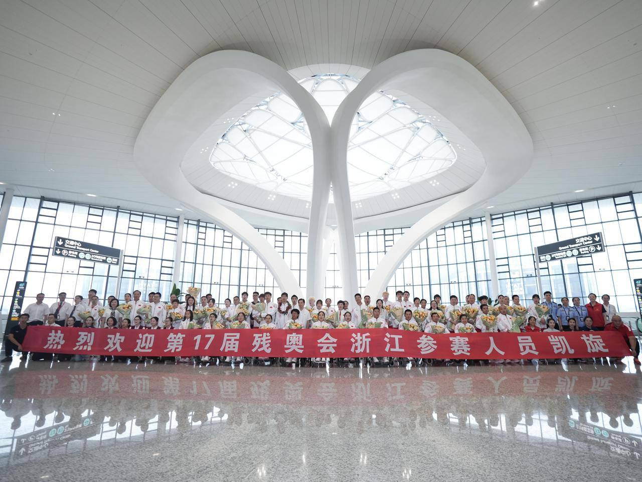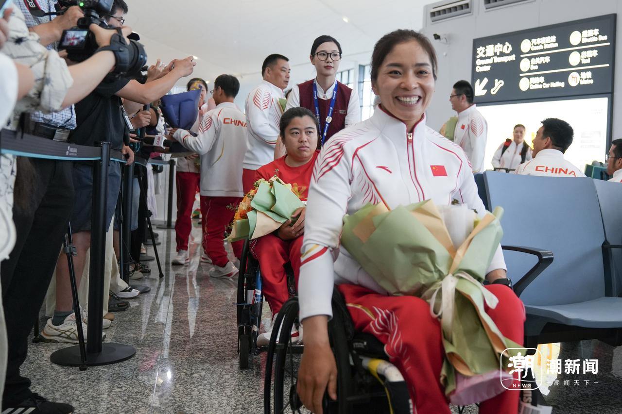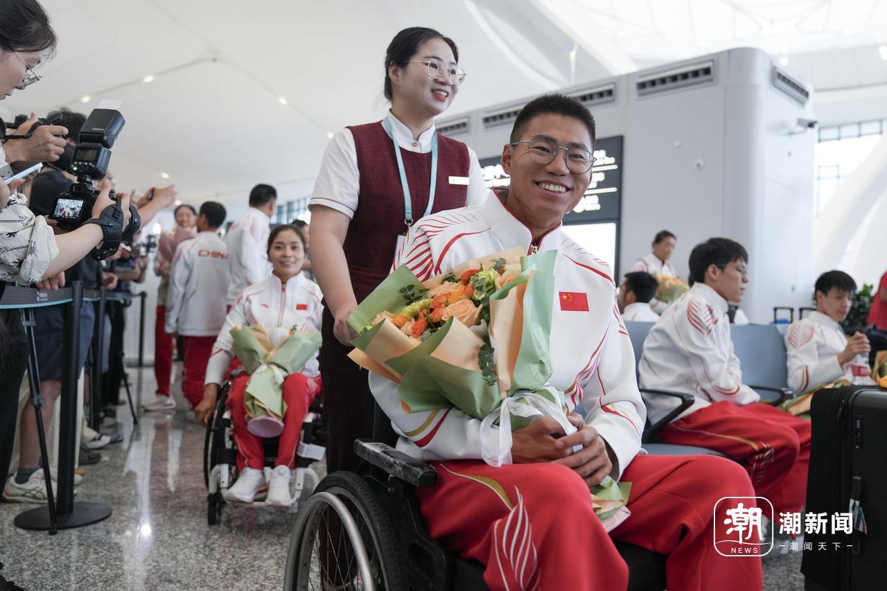 9月10日下午,参加巴黎残奥会的浙江籍选手及随行人员乘飞机抵达杭州萧山机场。