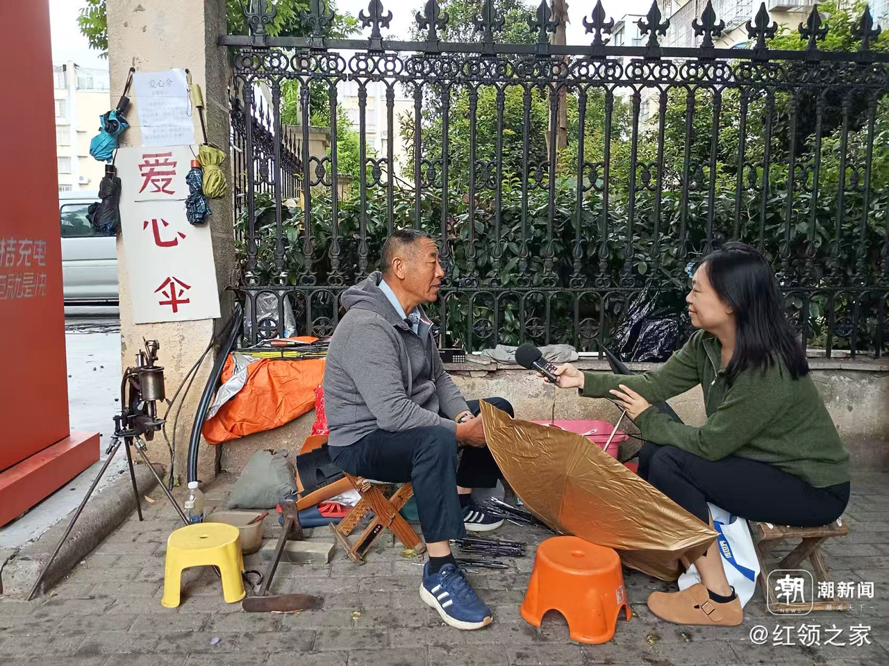 在泰河学校旁的通泰路上,一块写着“爱心伞”的旧木板在风雨中矗立了十年,默默见证着城市的温情流转。2009年,从河北保定来到北仑的李启旺发现,台风天里常有行人冒雨奔波,而街角废弃的雨伞却无人问津。于是,“修伞助人”的念头在他心中生根发芽。此后每个清晨,老人的修伞摊便准时出现在巷口:拆解锈蚀的伞骨、清洗发霉的伞面、重组散落的零件,他用布满老茧的双手,让1700把破损伞具重获“新生”。最令他珍视的,是一张泛黄的纸条,上面稚嫩的笔迹写着“谢谢爱心伞”——那是一对冒雨送孩子就医的夫妻留下的滚烫谢意。