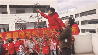 “蓝精灵多多园”空中花园里,金橘缀满枝头。孩子们手持剪刀,化身“小小果农”,小心翼翼地剪下金橘,装进竹篾小筐,再汇入大篮中。丰收的喜悦漾在眉梢,完成采摘任务的孩子,还收获了红彤彤的小灯笼作为奖励。他们将新年心愿随灯笼一同挂在果树之上,盼着来年心愿如果树般,抽芽、开花、结果,岁岁可期。