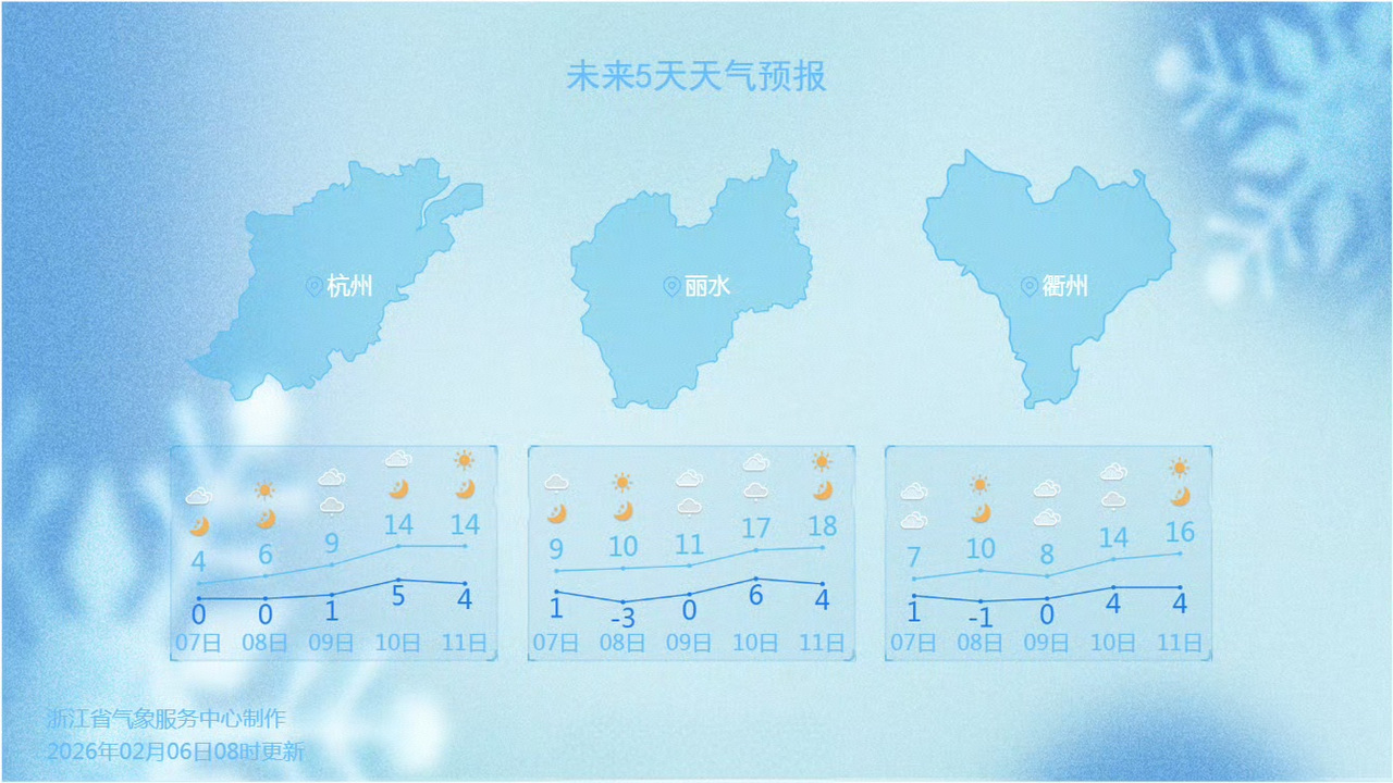 昨天(2月6日),浙南是降温“重灾区”。截至下午3时,临海(-14.9℃)、天台(-14.9℃)等地24小时降温幅度接近15℃。