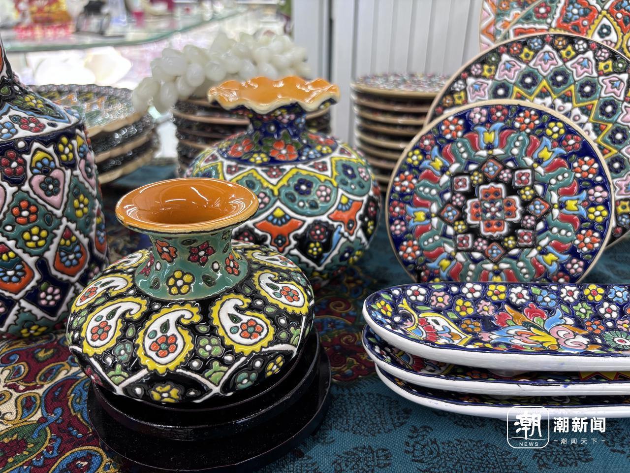 李洪店铺里展示的从伊朗进口的瓷器。 潮新闻记者 陈黎明 摄