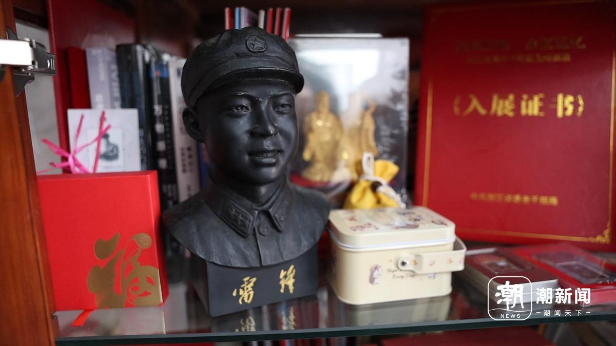 客厅最显眼的展示架上,放着雷锋的塑像和资料。潮新闻记者 施雄风/摄