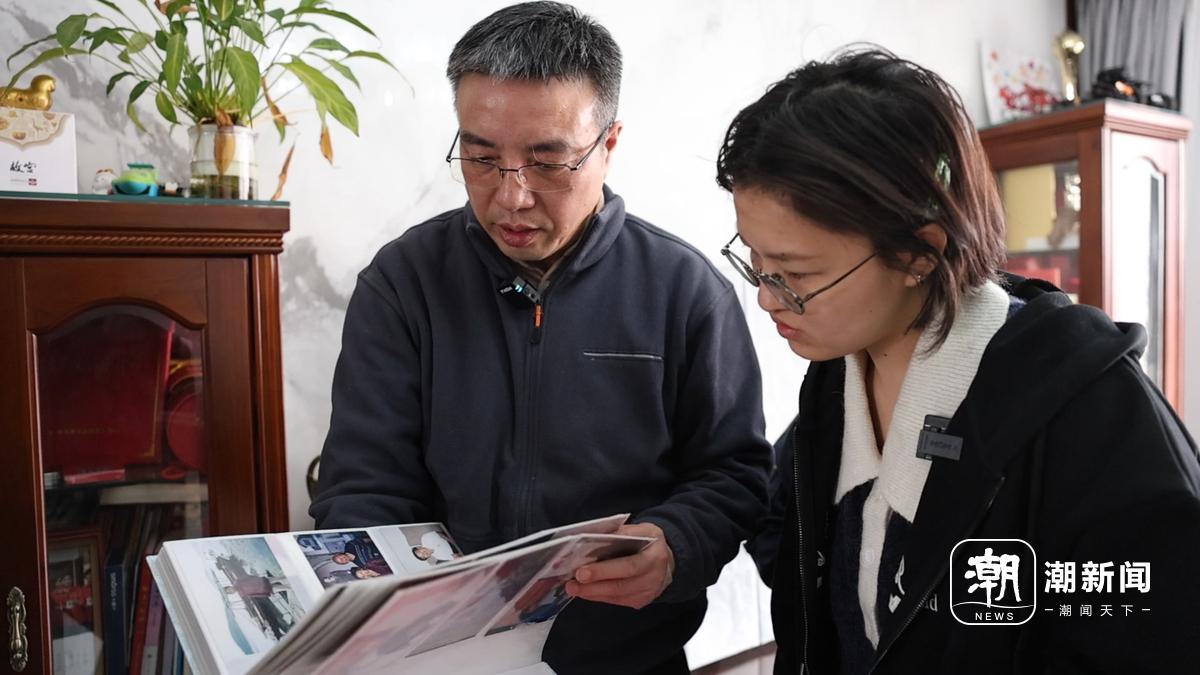 虞正平向潮新闻记者翻阅父亲生前的相册。潮新闻记者 施雄风/摄