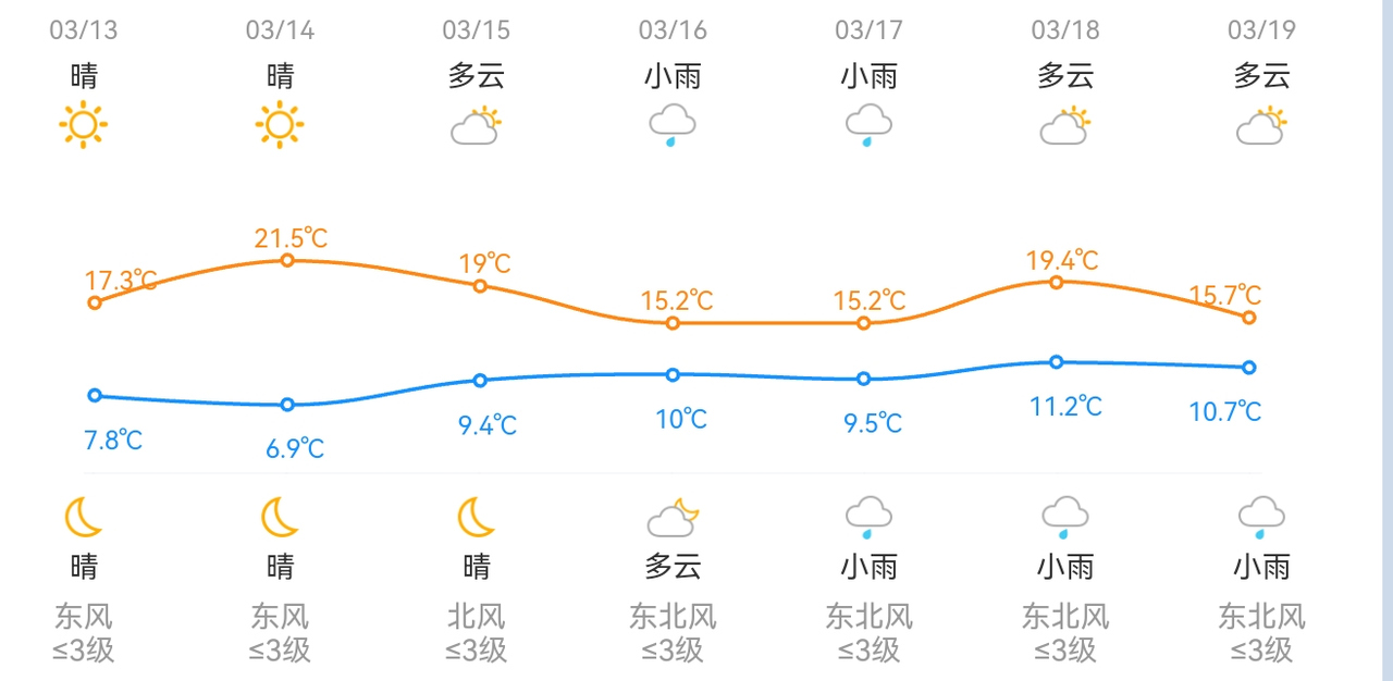 昨天(3月12日),阳光虽然热情,但在冷空气影响下,气温应声下跌。截至下午4点,浙北大部地区最高气温仅15~17℃,浙中南地区大部18~19℃,和前一天满屏20℃+相比,凉了不少。