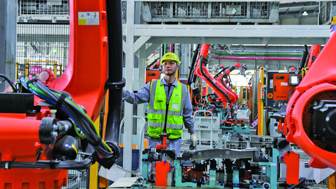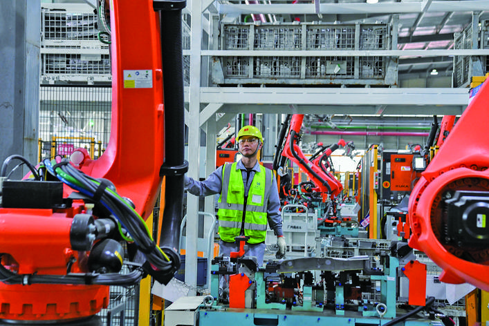 4月1日,位于金东区孝顺镇的金华至信科技有限公司车间内,工业机械臂挥舞作业,智能化生产线正全速运转,一件件新能源汽车零部件有序下线。