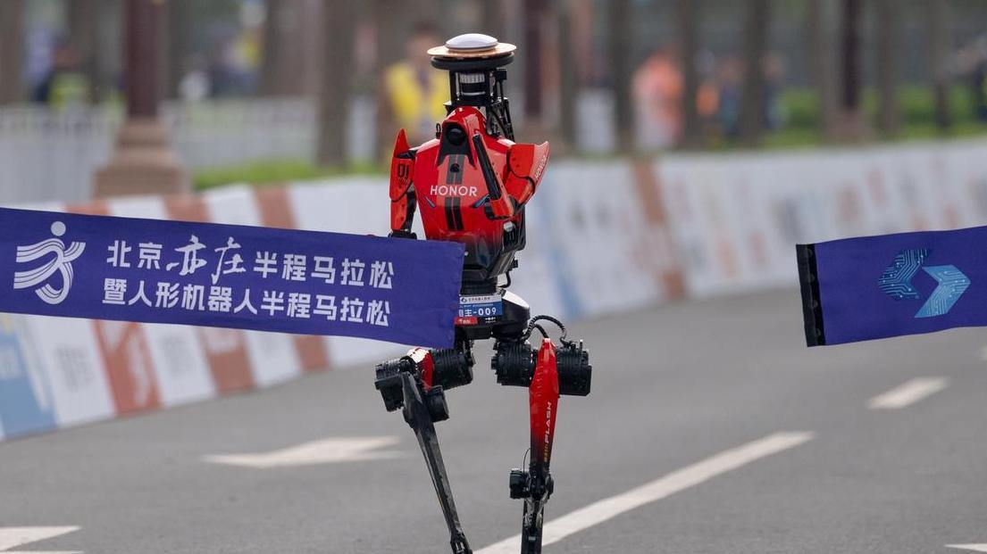 而今天,在北京亦庄的这条赛道上,机器人以接近人类的姿态,跑完了21.0975公里,跑进了一小时。