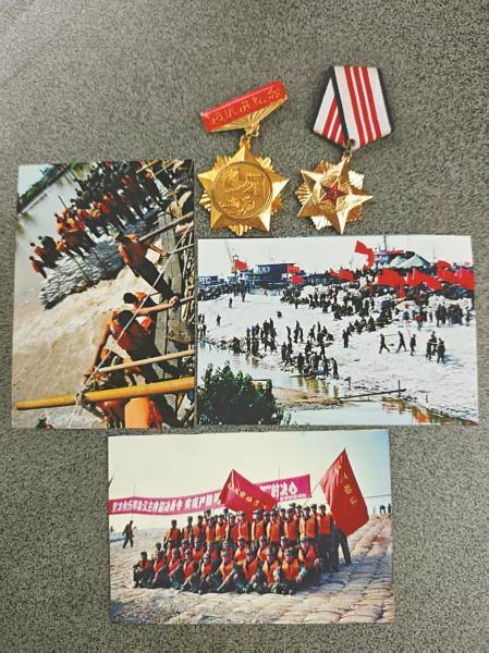 蒋海涛给记者展示九江抗洪时的照片和纪念章