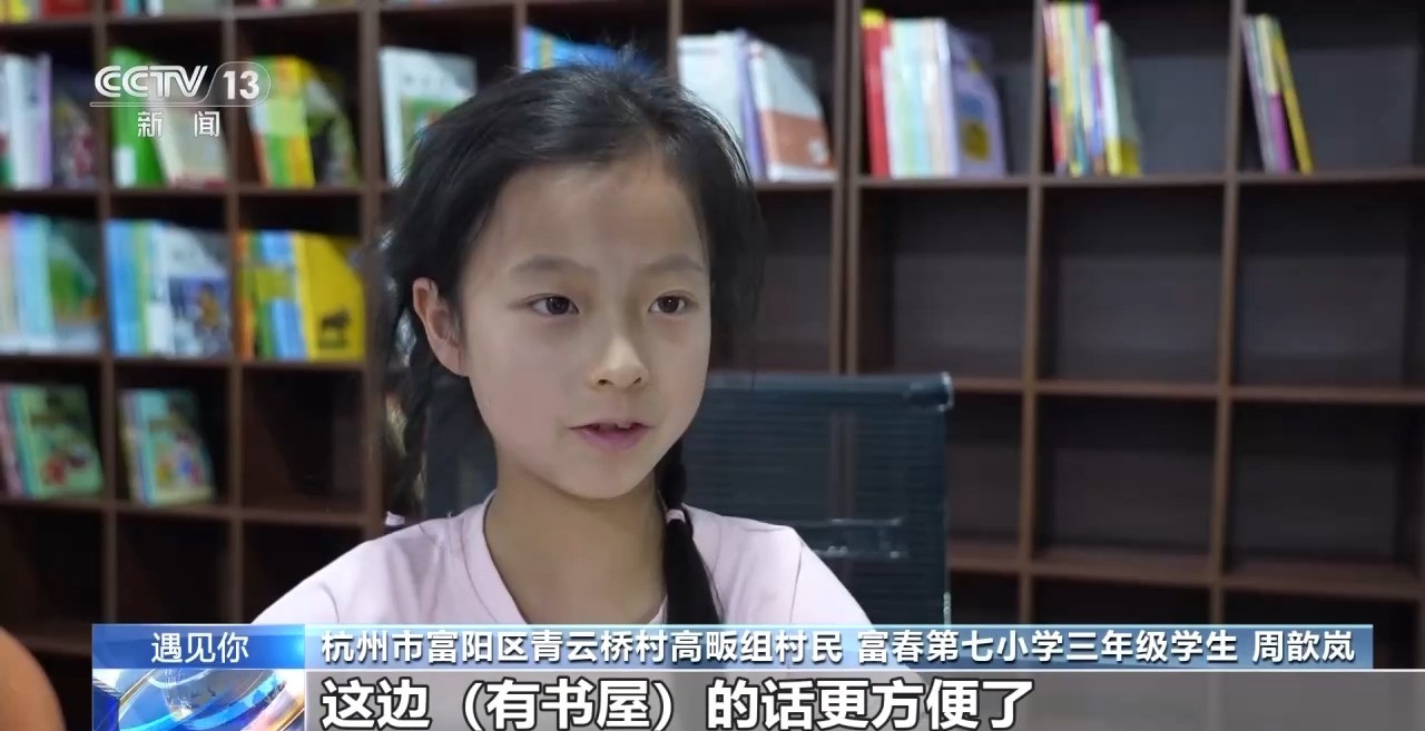 杭州市富阳区青云桥村高畈组村民 富春第七小学三年级学生 周歆岚:我们会去益行书屋或者富阳图书馆,一个月左右去一次。这边有书屋的话更方便了,基本上每周都可以看。