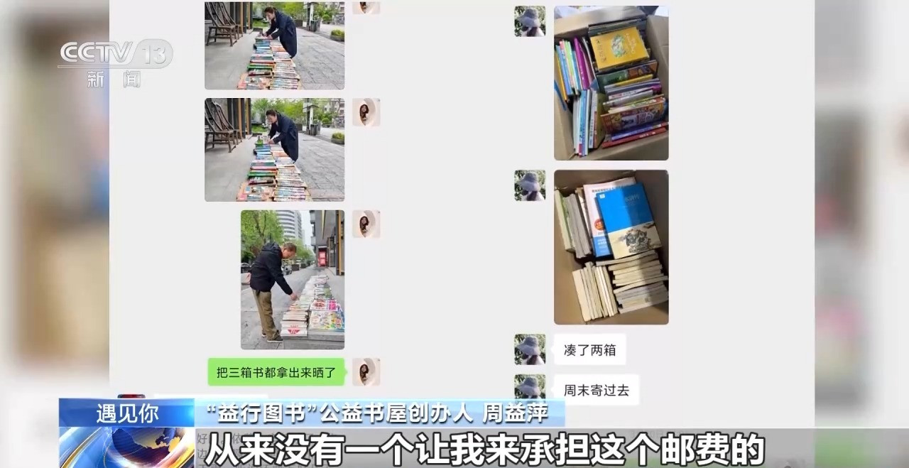 “益行图书”公益书屋创办人 周益萍:从陕西、山东、东北、金华给我寄。我当时跟大家说,邮费我来出。但是这十年来,从来没有一个让我来承担邮费的。特别感动,特别温暖。