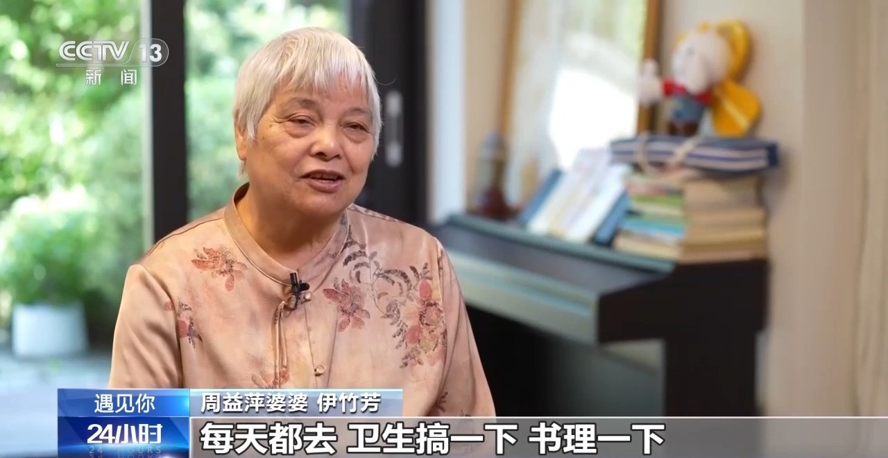 周益萍婆婆 伊竹芳:每天都去,卫生搞一下,书理一下。灯一天得多少钱啊,我去就给她关灯。我儿媳妇说,妈妈你不要关了,电费不要紧的,看书要看得清楚。