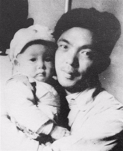 1949年,正在负责修理P-51战斗机的熊焰,抱着刚刚出生不久的熊晓虹。 图片由熊晓虹提供