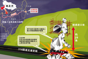 湖北客车遇山体崩塌 27人无生还可能