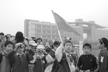 市实验小学四年级学生参观温州中学非常开心,纷纷拿出相机拍照留念 蒋文广 摄