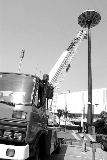 旗杆太高够不着 消防登高车来帮忙