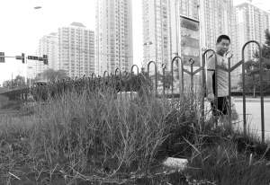 南侧的绿化带由于无人清理,杂草丛生。王飚 摄