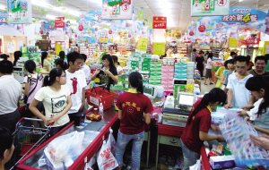 昨晚8时许,一场大雨过后,茶山街道的灯光更显得色彩斑斓,沿街店面全都挤满了学生。在温大教育学院读大二的珍珍,领着五六个同伴,大包小包地往学校搬生活用品。珍珍说,因为家住温州市区,所以拖到最后一个下午才到学校报到,过了一个暑假之后几乎什么东西都要买新的,从家里搬太麻烦了,不如全从镇上买,沐浴液、洗发水、毛巾、扫把都要换新的。“超市里最好卖的估计就是生活用品了。”珍珍笑着说。