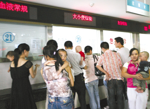 昨天下午3点50分,市育英儿童医院挂号大厅已稍显平静,门诊部依然人来人往,内科、外科、就连普通科室都坐满了带着孩子和奶粉来检查的家长。